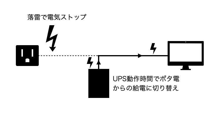 UPSはいわばバイパスなので、電源が遮断される瞬間はどうしても存在します。
